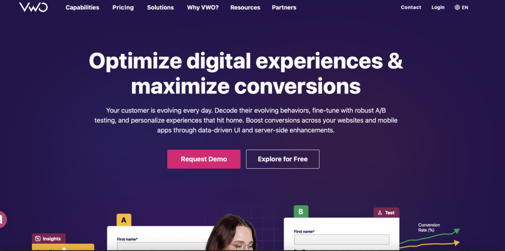 What It Does: VWO is a comprehensive CRO platform with AI-driven experimentation, personalization, and targeting.