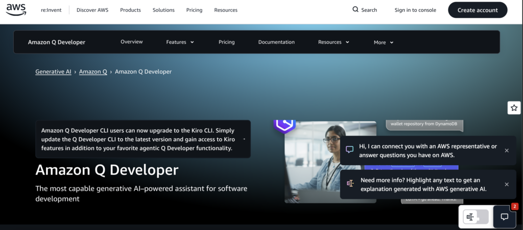 Description: Amazon’s AI coding assistant integrates with major IDEs to provide code suggestions, security scanning, and reference tracking. It’s optimized for AWS services and common frameworks.