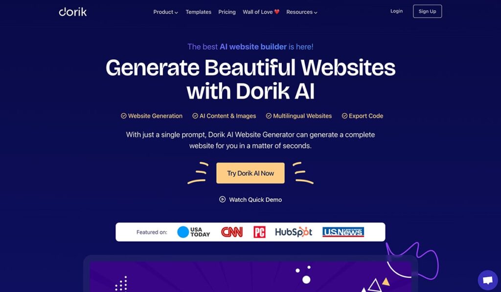 Description: Dorik AI is a straightforward website builder that uses artificial intelligence to generate complete websites from text descriptions. It focuses on simplicity and speed for creating landing pages and business websites.