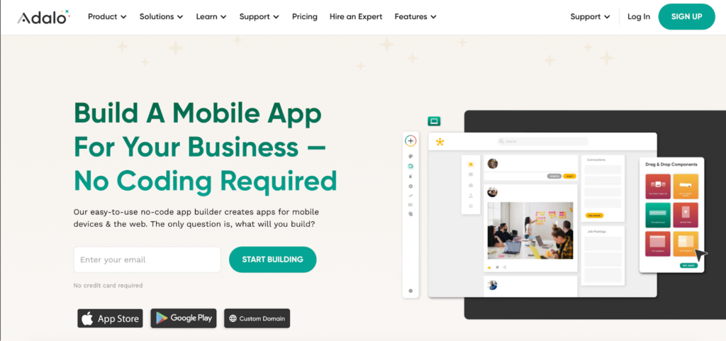 No-code AI platforms combine drag-and-drop interfaces with AI-powered suggestions for optimal results. Users visually arrange elements while AI recommends layouts, colors, and content structure. These platforms prioritize ease of use over technical flexibility for founders without coding backgrounds.